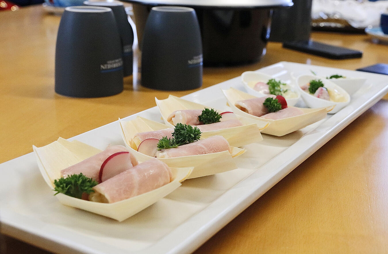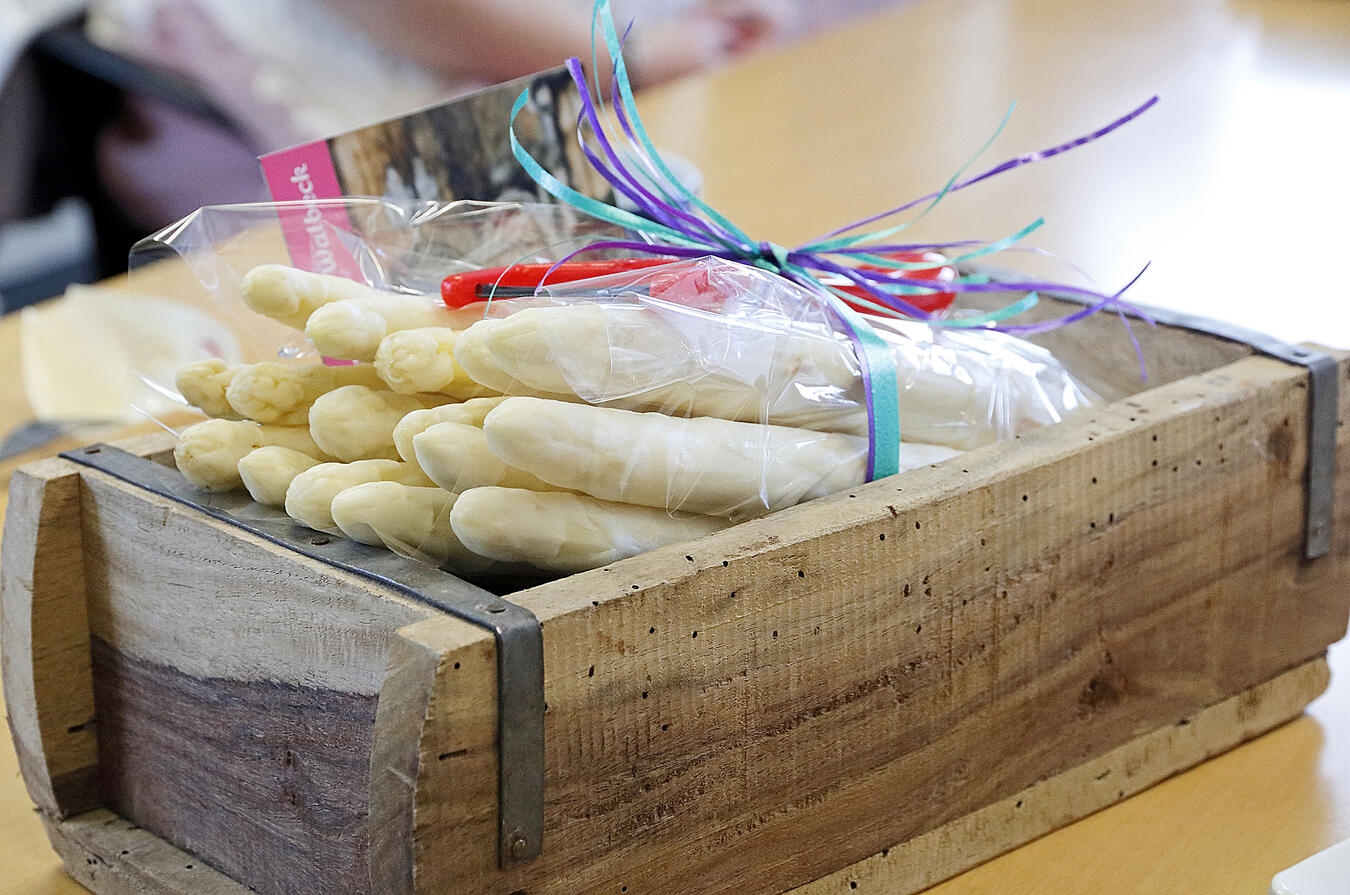 Eine Delegation aus Walbeck rund um Spargelprinzessin Monika van Bonn und Spargelgrandier Peter Strauß ist zur Eröffnung der Spargelsaison zu ihrer traditionellen Sternfahrt aufgebrochen. Erster Halt war der Niederrhein-Nachrichten-Verlag in Geldern.