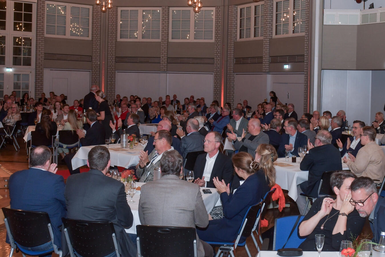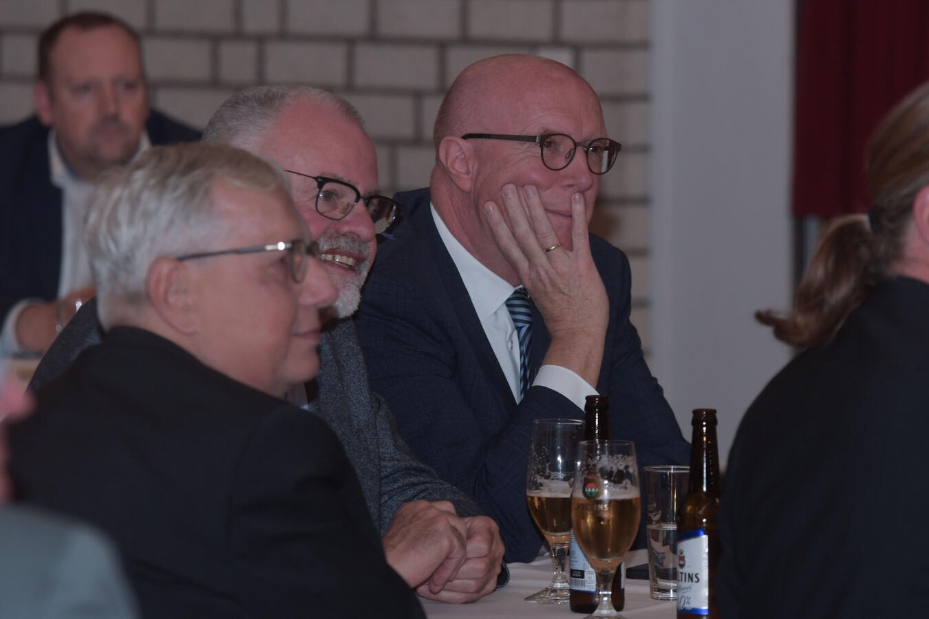 Landrat Christoph Gerwers würdigte in seiner Laudatio Ulrich Knickrehms Wirken in der Bürgermeisterkonferenz: „Streng in der Sache, immer menschlich im Ton“. Und es sei beeindruckend, wie er den Staffelstab nun weitergebe: „Die Stadt hat neue Themen, da braucht es starke Schultern“, zitierte er Ulrich Knickrehm. Autor Robert Peters ließ die gemeinsame Jugendzeit in Goch wieder lebendig werden und pflegte feinsinnig die Rivalität zwischen Goch und Kleve. Pfarrer Robert Arndt, quasi der Nachbar von nebenan, berichtete, dass er und Ulrich Knickrehm in zehn Jahren zwar „Dutzende Parkplatzgespräche“ geführt, sich aber noch nie privat getroffen hätten. Ein Umstand, der sich sicherlich ändern dürfte. Ein Gänsehautmoment von vielen, als Pfarrer Arndt dem scheidenden Stadtoberhaupt den Segen mit auf den Weg gab. Momente voller Lachen gab es bei der Abstimmung zu Behauptungen über Ulrich Knickrehm. Zum Beispiel, wie viele E-Mails in seinem Postfach schlummern, oder ob er Verträge mit seinen Töchtern abgeschlossen hat (ja, hat er, über’s Essen probieren).