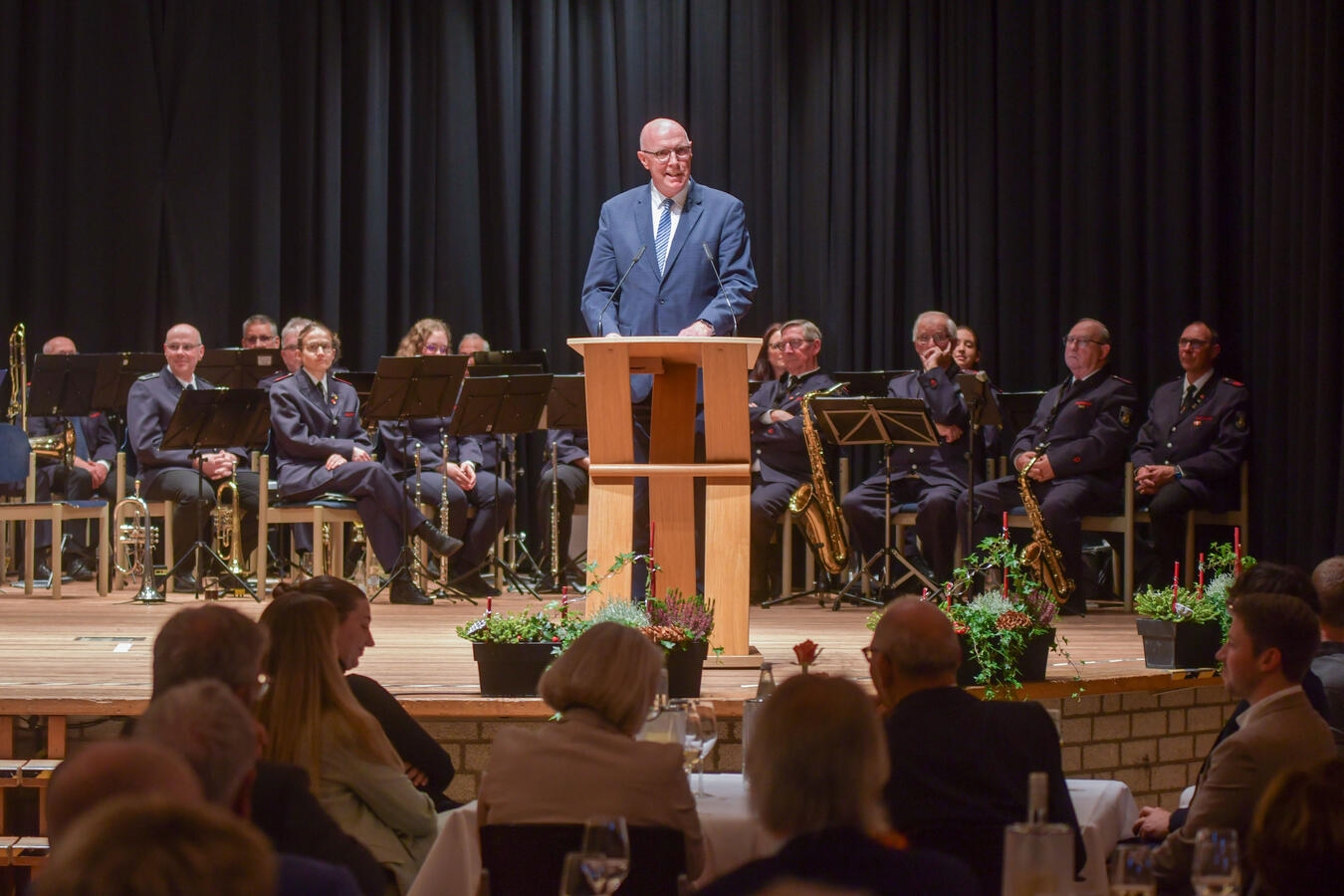 Moderiert von Andrea Franken aus Keppeln, erlebten die geladenen Gäste im Kastell eine kurzweilige Feierstunde, mit der das langjährige Stadtoberhaupt – nach zehn Jahren im Amt – verabschiedet wurde. Überraschung ist das Stichwort, denn Ulrich Knickrehm bekannte, dass er schlecht damit umgehen könne, wenn er nicht wisse, wo es hingeht. Doch in vielen Momenten sichtlich bewegt, erlebten er und seine Familie ein Programm, das die Verwaltungsmitarbeiter „hinter seinem Rücken“ akribisch vorbereitet hatten, um sich von ihrem Chef zu verabschieden. Ein bisher einmaliges Ereignis in Goch. Für die musikalische Untermalung des Abends sorgte der Musikzug der Freiwilligen Feuerwehr Goch.