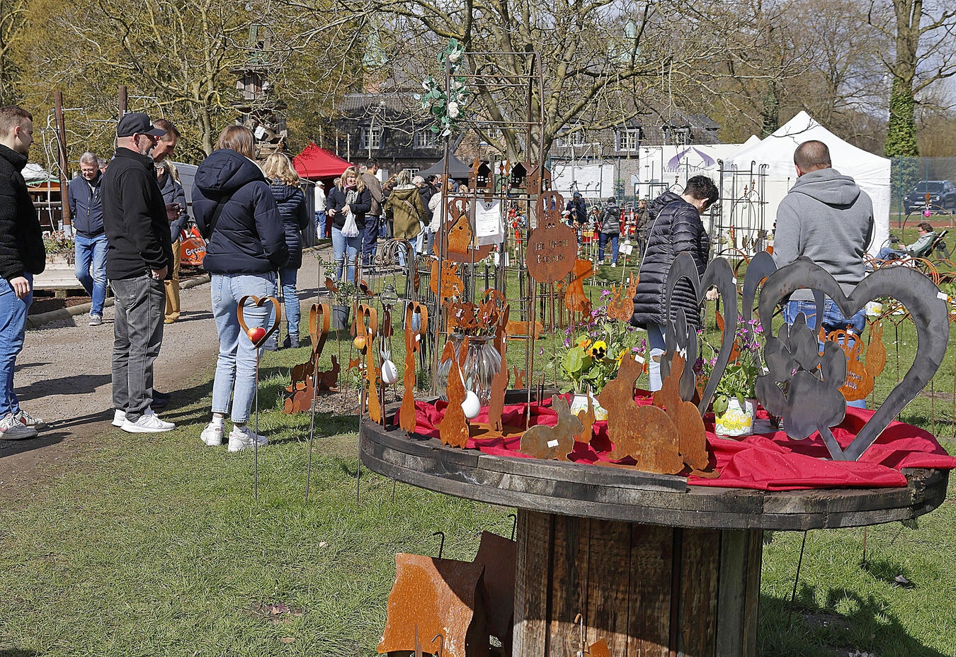 Einen gelungenen Mix aus Handwerk, Genuss und Natur erlebten die Besucher des Frühlingsmarktes auf Schloss Walbeck. Rund 70 Aussteller präsentieren im Schloss und im Park ihre handgefertigten Produkte und kreativen Ideen. Das Angebot reichte von Blumen und Kräutern über Keramik, Dekorationen und handfertigen Unikaten aus Holz oder Stoff bis hin zu kulinarischen Spezialitäten wie Marmeladen, Edelbrände und weitere regionale Köstlichkeiten. Nicht fehlen durfte der Osterhase, der die Kinder mit kleinen Überraschungen beschenkte. Und auch Walbecks Spargelprinzessin Monika II. und ihr Spargelgrenadier ließen es sich nicht nehmen, die Besucher persönlich zu begrüßen.