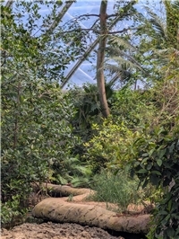 „Es macht unglaublich viel Spaß, mit den Besuchern ins Gespräch zu kommen“, sagt der Emmericher, der bei der Stadt gearbeitet und eine sinnvolle Beschäftigung für „die Zeit danach“ gesucht hat. „Es ist gar nicht so leicht, hier als Freiwilliger angenommen zu werden“, weiß er aus eigener Erfahrung. Es gibt strenge Vorschriften und man muss ziemlich viel lernen, bevor man loslegen darf. „Die Anforderungen sind hoch“, sagt der Pensionär, „aber genau das finde ich gut: Man wird gefordert und lernt ständig dazu!“ Jochen ist einer von rund 230 Freiwilligen, die im Burgers‘ Zoo arbeiten. Seinen „Dienstplan“ erstellt er sich selbst. „Das läuft alles online“, erklärt er. Man sucht sich eigenständig seine bevorzugten Tage oder eine Führung aus und trägt sich ein. Fertig. Gern erzählt Jochen den Besuchern auch von den Projekten, mit denen sich der Burgers‘ Zoo für sensible Naturgebiete in der ganzen Welt einsetzt. So stehen die Mangroven im Burgers Zoo für eine 400 Quadratkilometer große Fläche in Belize (Mittelamerika), für deren Schutz sich der Zoo schon seit über 30 Jahren einsetzt. Das Areal wird rund um die Uhr von Rangern bewacht, bedrohte Tierarten werden dort ausgewildert und die Kinder lernen in der Schule, weshalb es wichtig ist, die Mangroven zu erhalten.