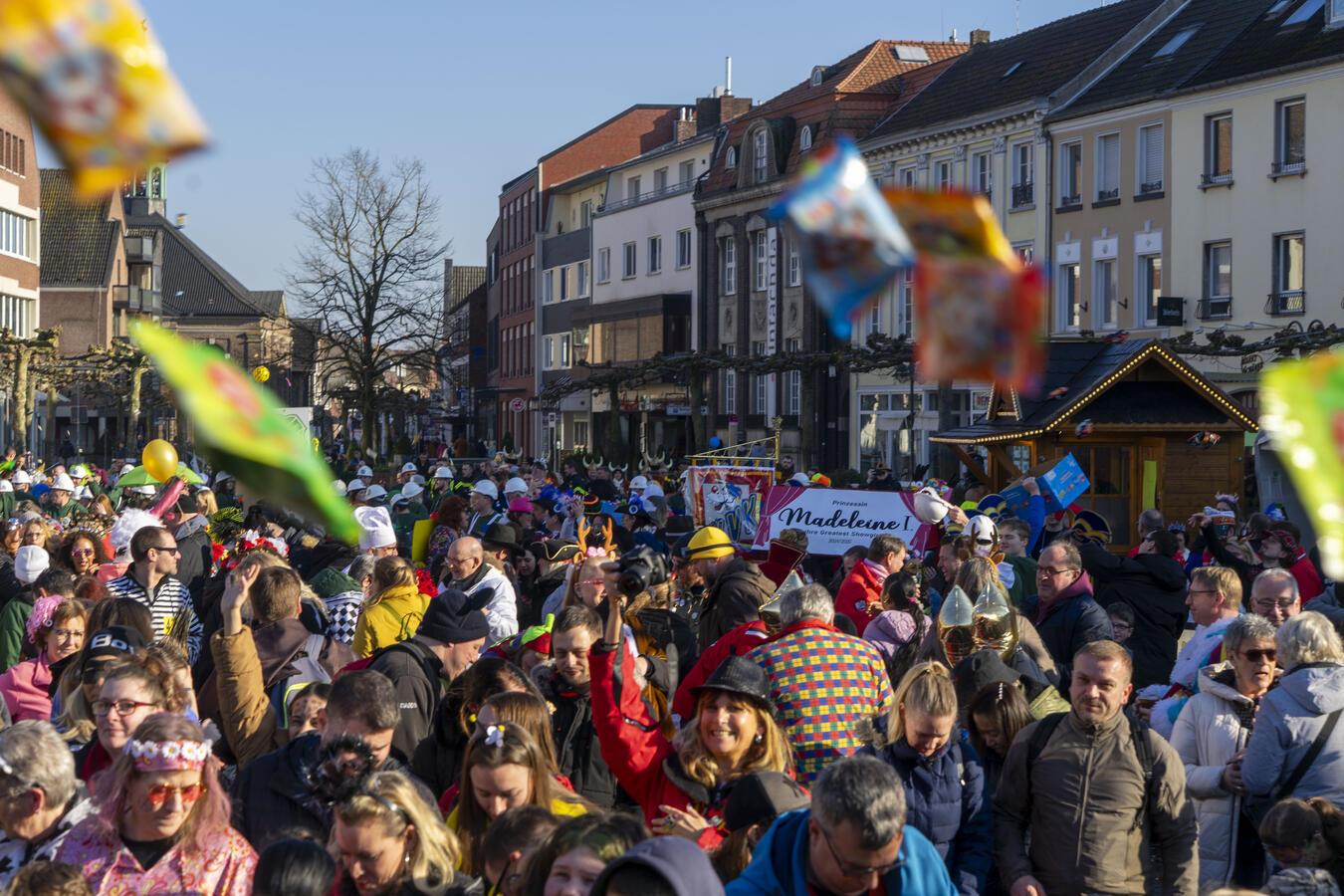 Zum dritten Kamelle-Sonntag hatte der Verein Karneval für Geldern (KfGeldern) eingeladen. Nach dem bunten Straßenumzug durch die Innenstadt startete am Tulpensonntag die große Party auf dem Marktplatz.