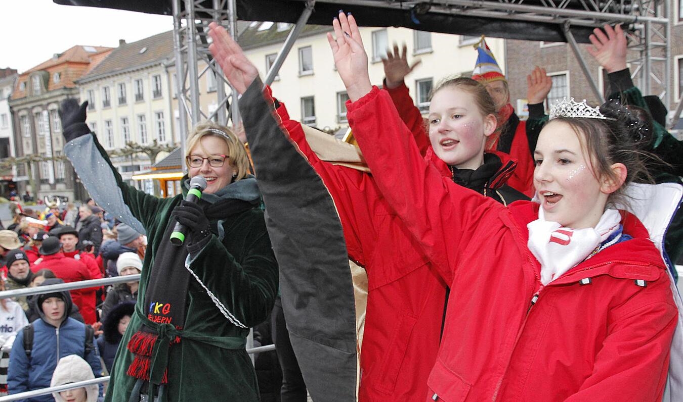 Zum vierten Mal hatte der Verein Karneval für Geldern zum Kamellezug eingeladen. Mit rund 500 Zugteilnehmern zog der farbenfrohe Zug durch die Gelderner Innenstadt, um mit den vielen Jecken am Straßenrand die fünfte Jahreszeit mit Musik, Frohsinn und Kamelle zu feiern. Besonderes Highlight war wieder der Kamelle-Regen auf dem Marktplatz, bei dem die Süßigkeiten besonders reichlich vom Himmel fielen. Zusätzlich präsentierten die Karnevalsvereine aus dem Gelderland mit ihren Tollitäten ein buntes Showprogramm.