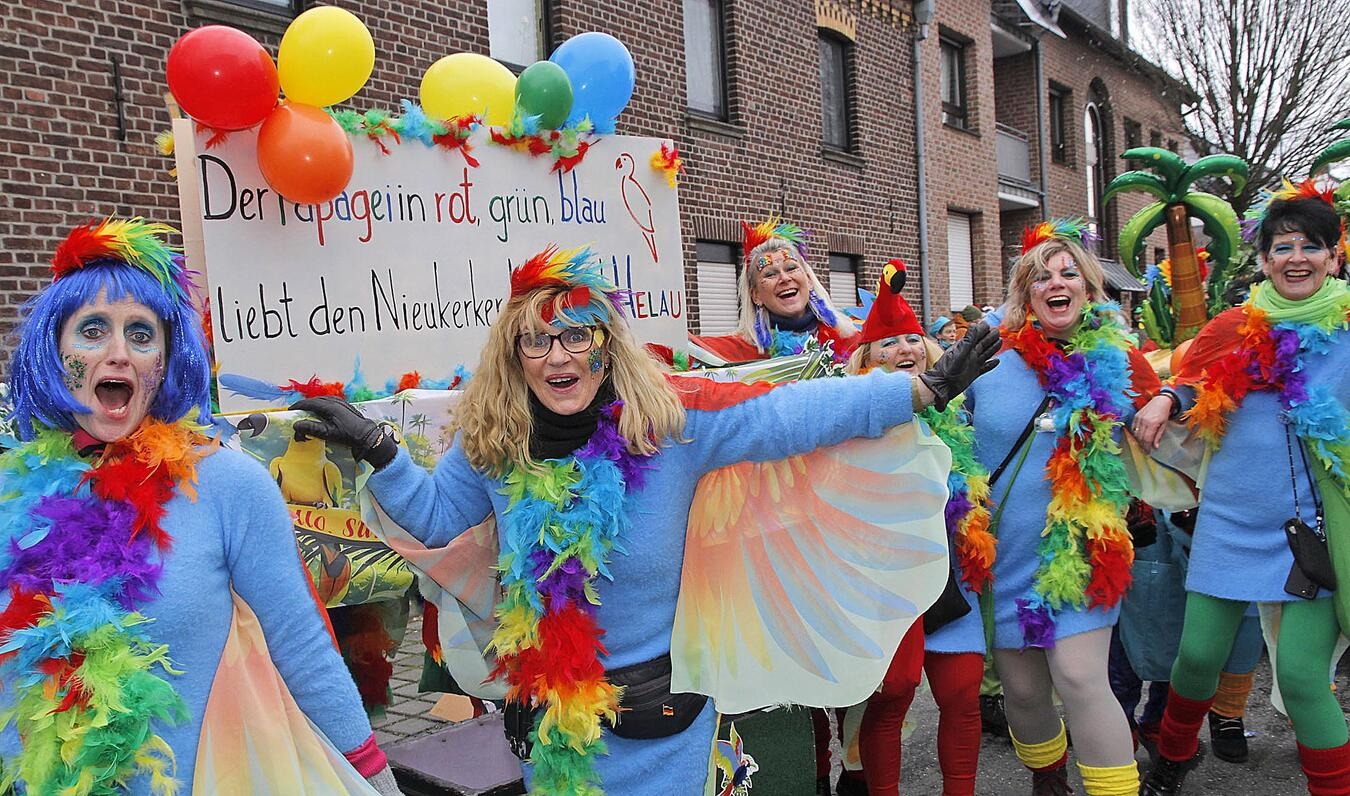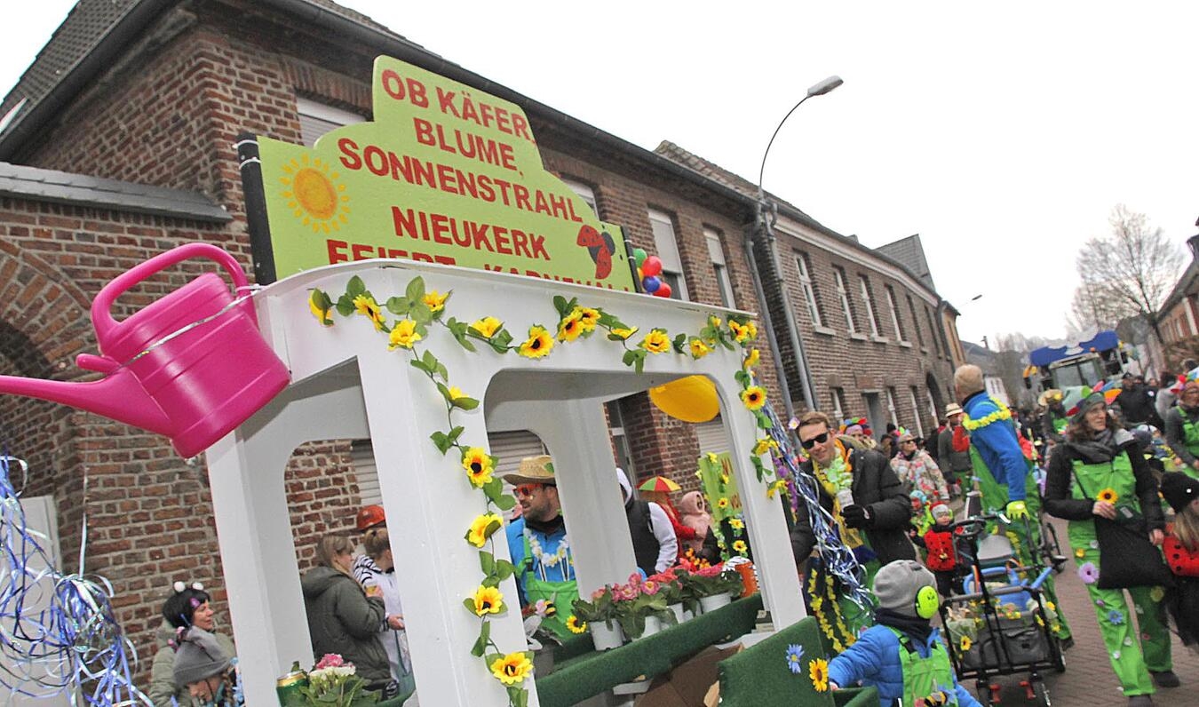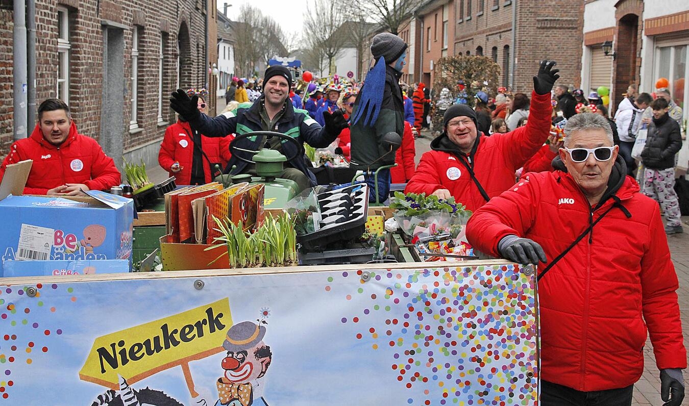 „Ein Herz, ein Dorf, ein Narrensaal – Nieukerk feiert Karneval!“ Unter diesem Motto zog am Sonntag ein bunter Karnevalszug durch die Straßen in Nieukerk. Zum 49. Mal hatte der Karnevalszugverein Nieukerk mit Unterstützung vieler Freiwilliger und der Gemeinde Kerken den bunten Lindwurm auf die Beine gestellt. Nach dem Kamelleregen auf den Straßen wurde beim Narrentanz im Adlersaal fröhlich weitergefeiert.