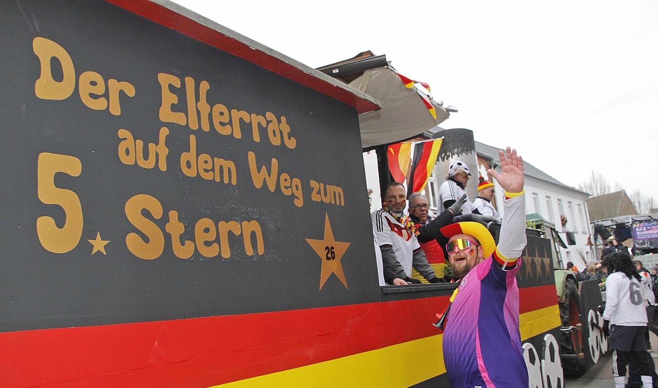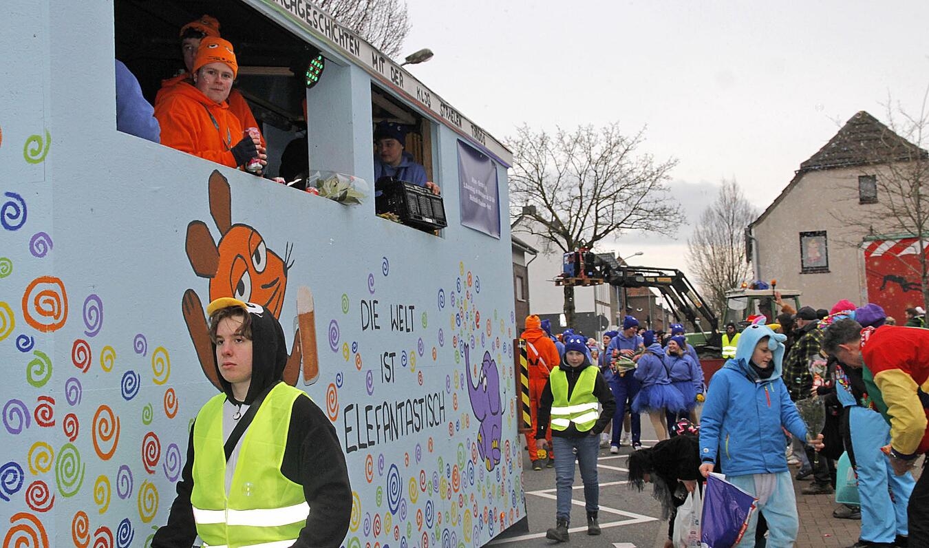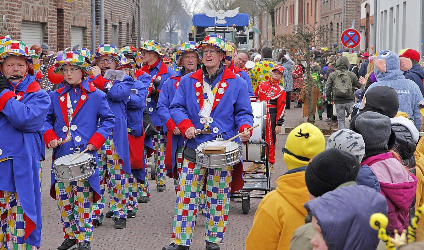 „Ein Herz, ein Dorf, ein Narrensaal – Nieukerk feiert Karneval!“ Unter diesem Motto zog am Sonntag ein bunter Karnevalszug durch die Straßen in Nieukerk. Zum 49. Mal hatte der Karnevalszugverein Nieukerk mit Unterstützung vieler Freiwilliger und der Gemeinde Kerken den bunten Lindwurm auf die Beine gestellt. Nach dem Kamelleregen auf den Straßen wurde beim Narrentanz im Adlersaal fröhlich weitergefeiert.