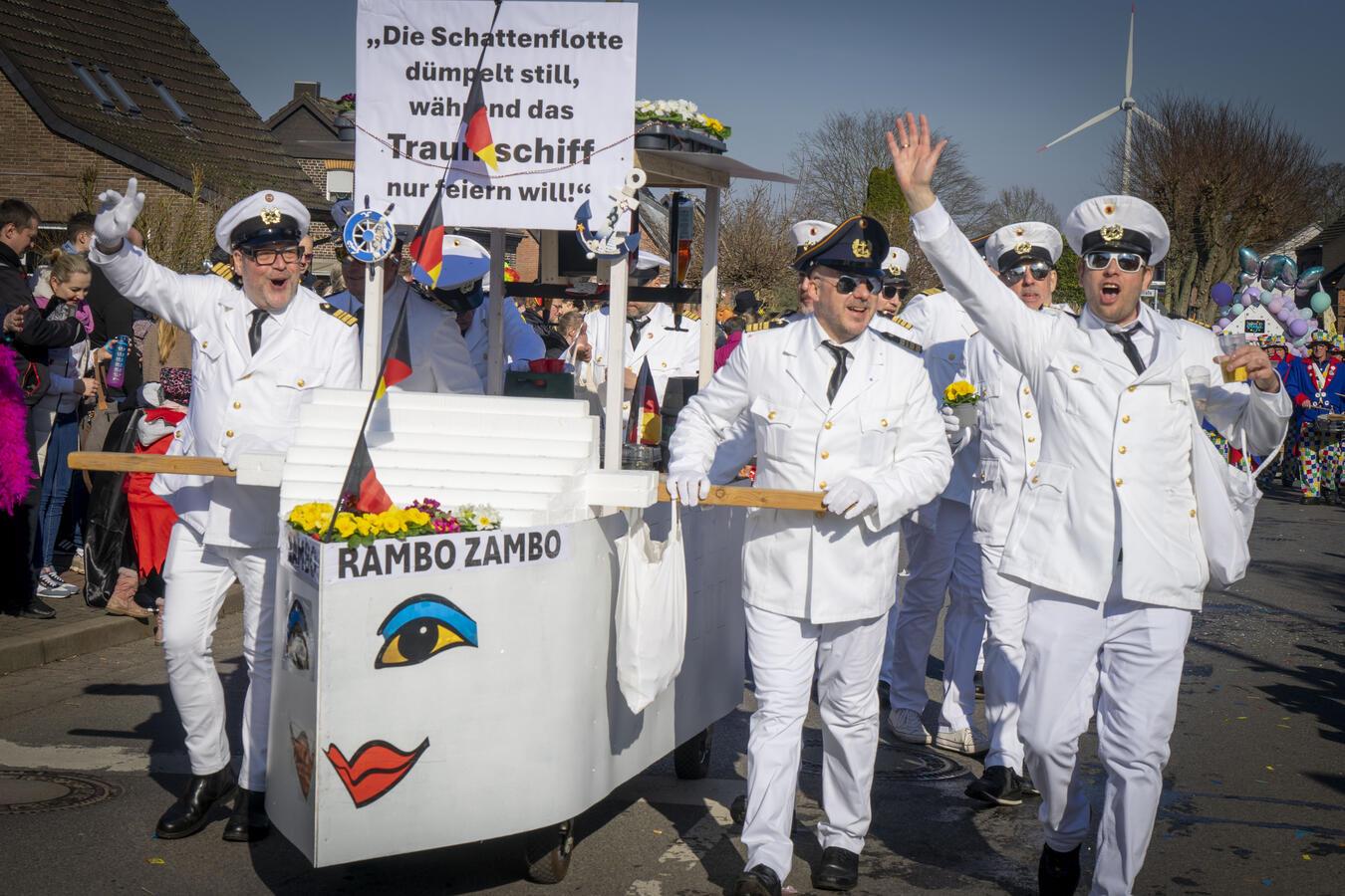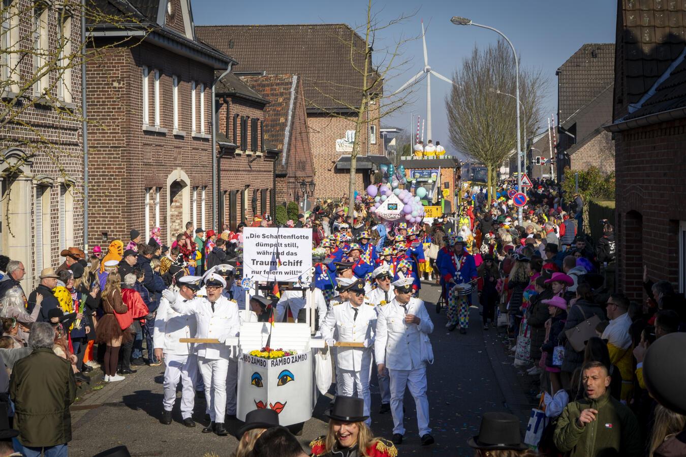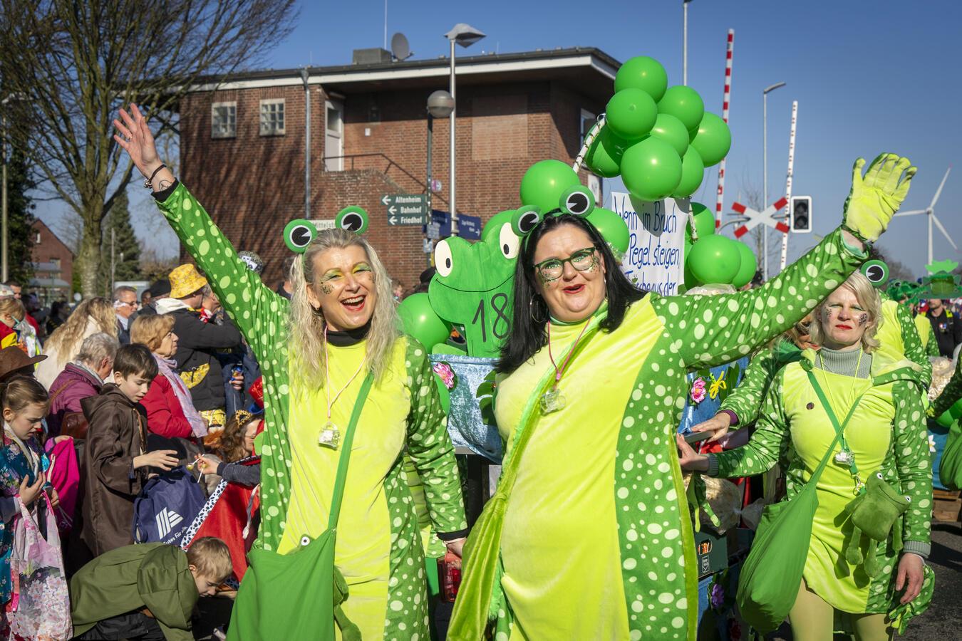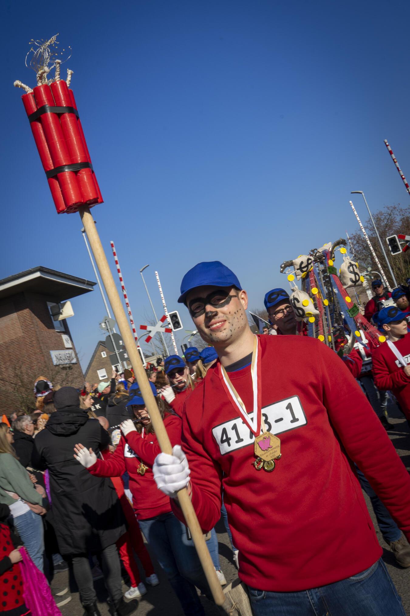 Unter dem Motto "Beim Karneval am Landwehrstrand sind alle Jecken außer Rand und Band" erlebten die Feierfreudigen am Tulpensonntag einen bunten und mitreißenden Karnevalszug in Nieukerk.