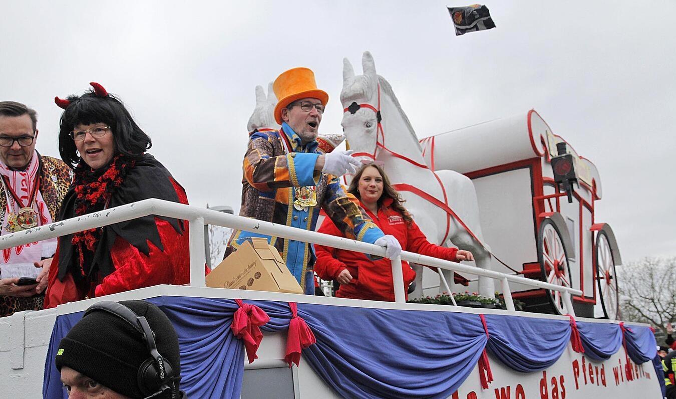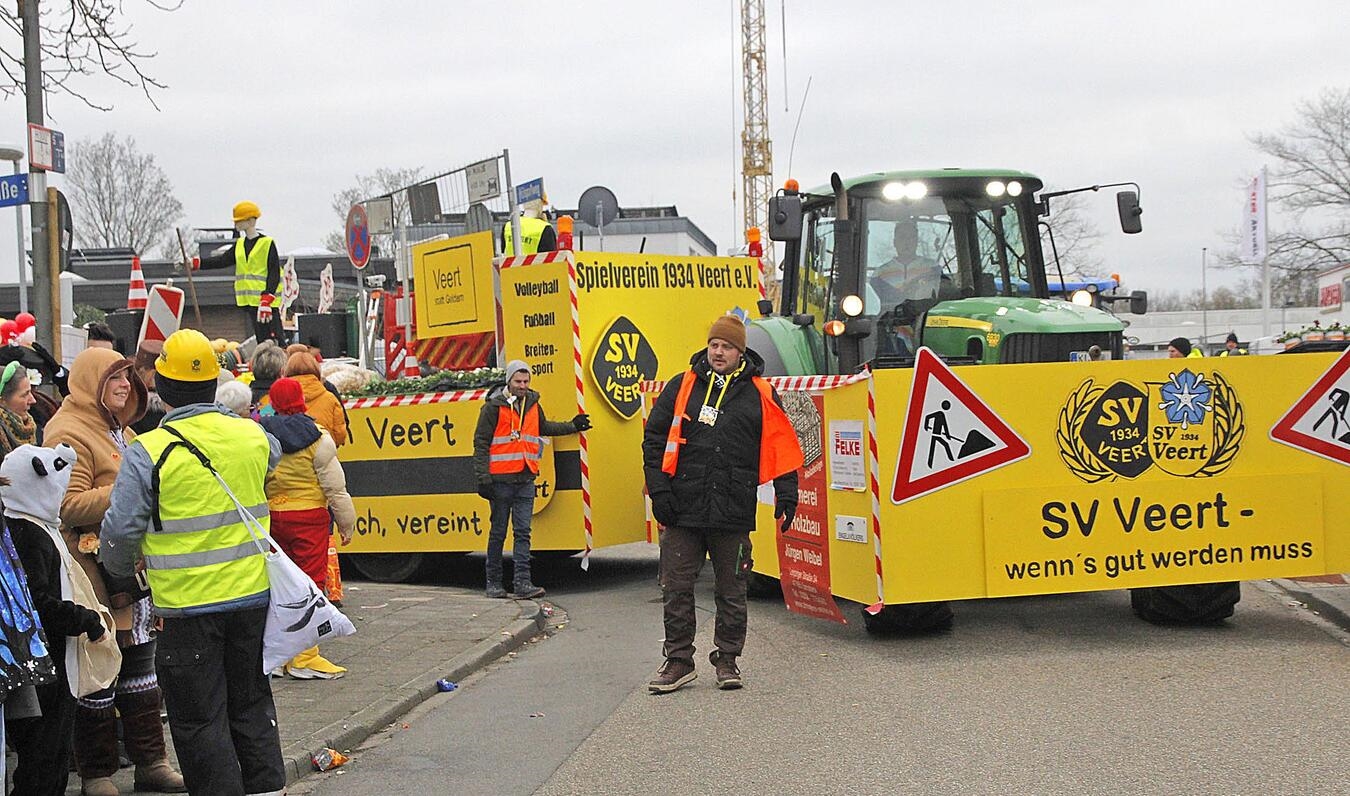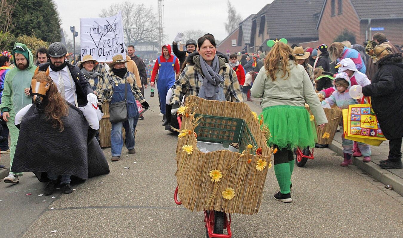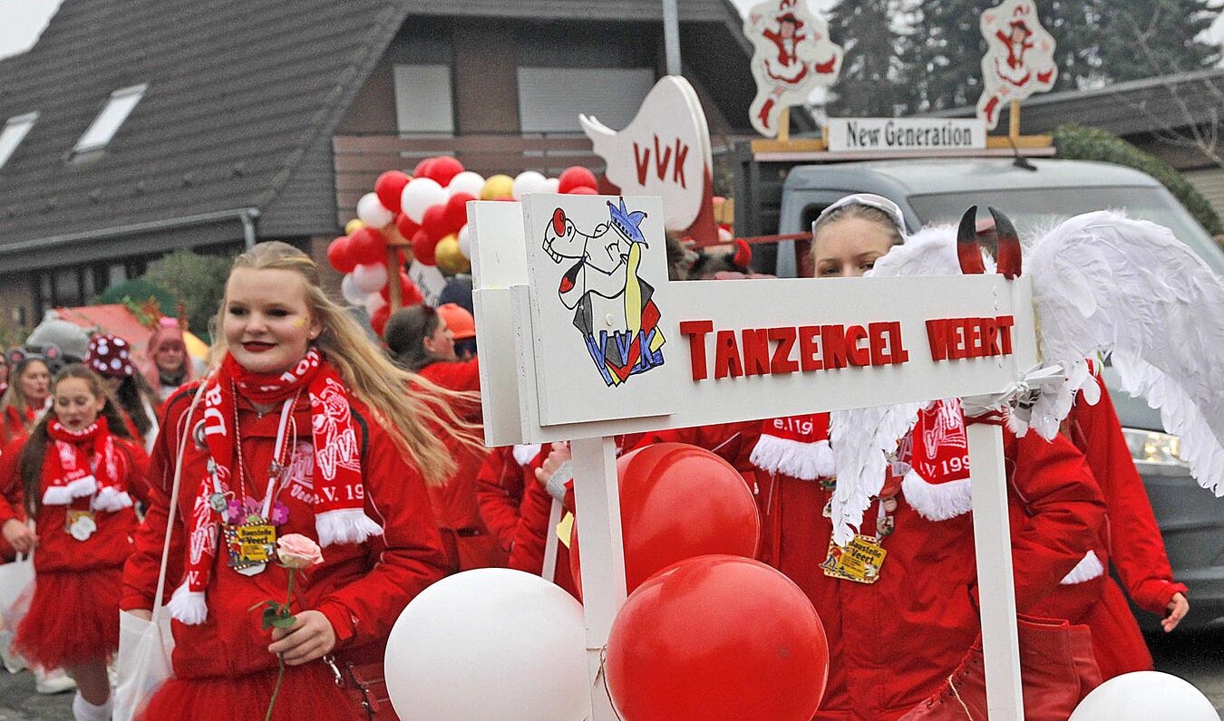 Strahlende Gesichter, bunte Kostüme, ausgelassene Stimmung und reichlich Kamelle - in Veert startete am Nelkensamstag der große Karnevalszug. Mit 29 Zuggruppen, 19 Karnevalswagen und sechs Fußgruppen zogen die rund 800 Zugteilnehmer mit fröhlichem Helau durch die Straßen. Nach dem Zug wurde noch lange bei den After-Zug-Partys in den Gaststätten und in der VVK-Arena die fünfte Jahreszeit gefeiert.