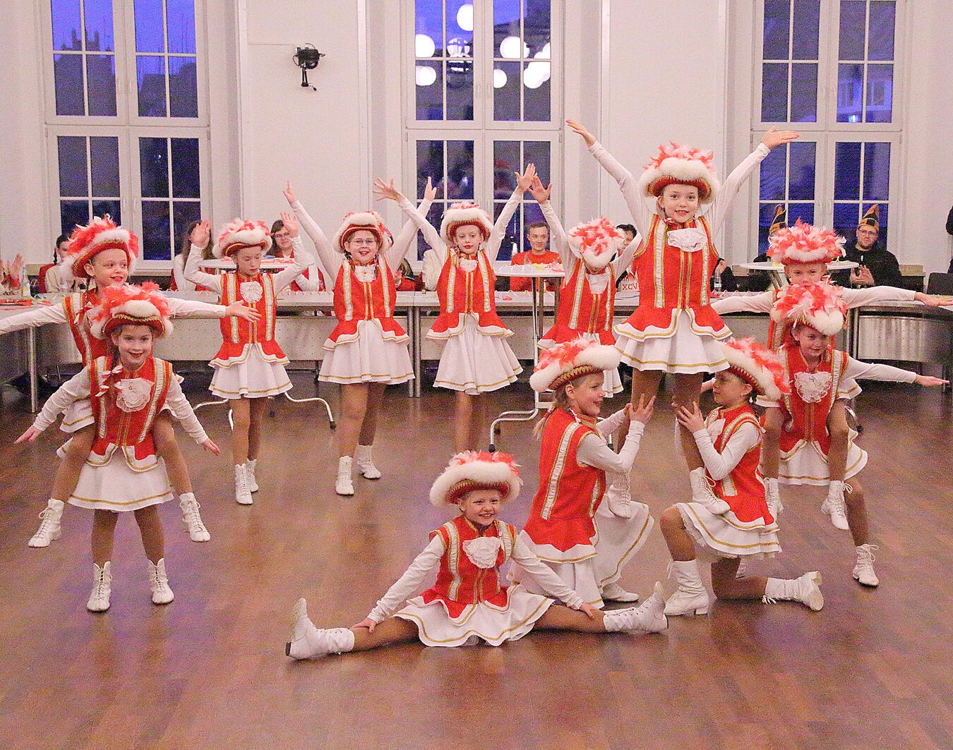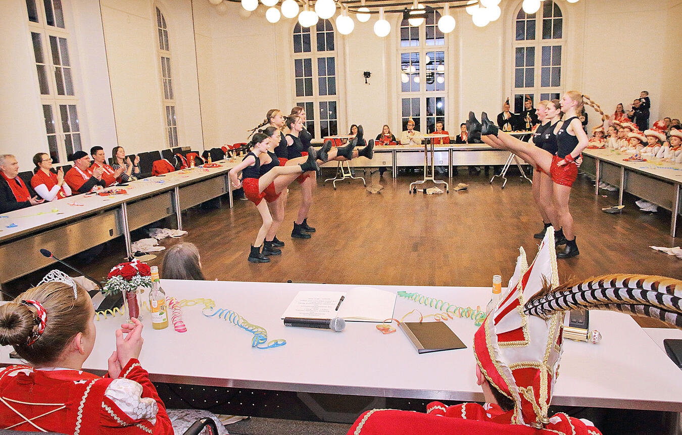 „Habt bitte Nachsicht mit mir, das ist mein erster Prinzenpaarempfang“, begrüßt Bürgermeister Rafael Zur die Gäste – und beweist im nächsten Moment, dass ihm das dreifache Helau fast schon locker von den Lippen geht. Doch die große Bühne gehört heute ohnehin Kiara und Felix. Mit in der ersten Reihe sitzt auch Lara I. (Holtkamp) samt ihrer Pagin. Die Kinderprinzessin aus Wesel ist dieses Mal ohne ihren Prinzen angereist, denn der muss krankheitsbedingt passen – da heißt es schonen. Lange auf sich warten lässt das Programm natürlich nicht. Die Kindertanzgarde des XCV fegt mit flotter Sohle übers Parkett, später entführen die Showtanzfunken die Gäste mit einem mitreißenden Tanz ins Dschungelcamp. Und spätestens beim „Oben unten“ – Zugaben natürlich inklusive – zeigen auch die Tollitäten, dass sie den Takt nicht nur im Herzen, sondern auch in den Beinen haben.