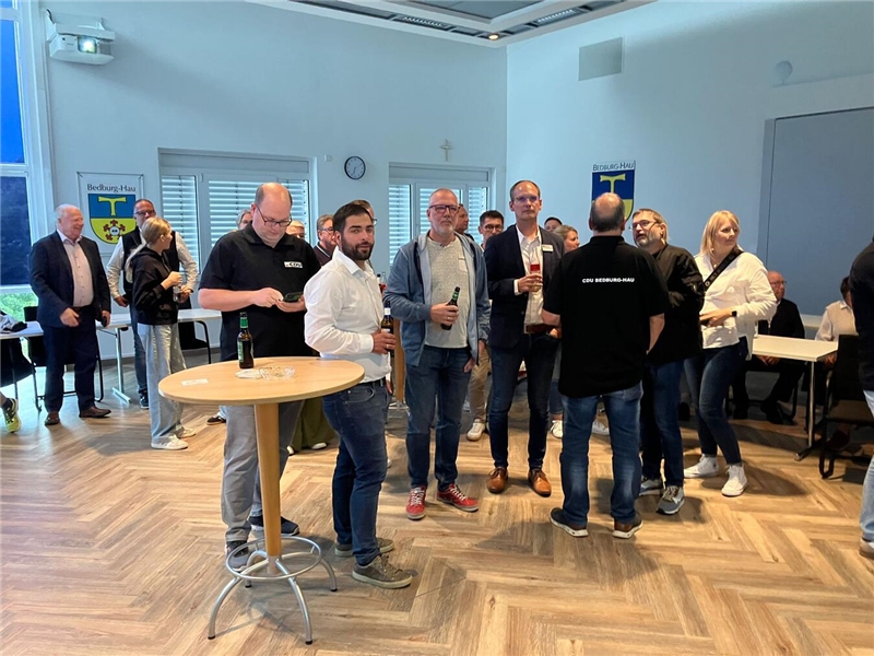 Bürgermeister Wolfgang Gebing ist vor Ort im Rathaus, Dr. Kerem Bulut ebenfalls. Gebing ist recht zuversichtlich und rechnet mit "40 plus", ein anderes Ergebnis fände er komisch.