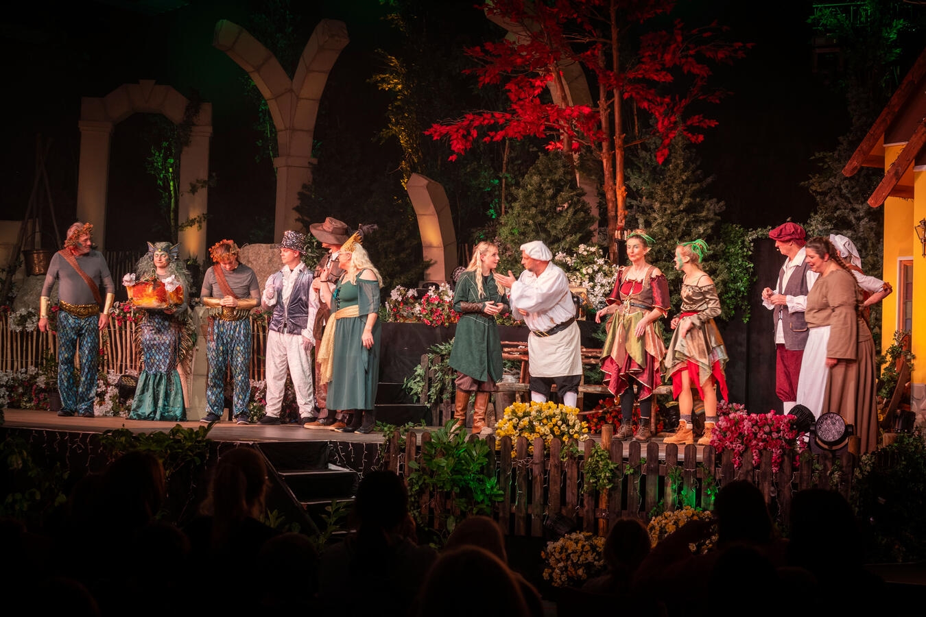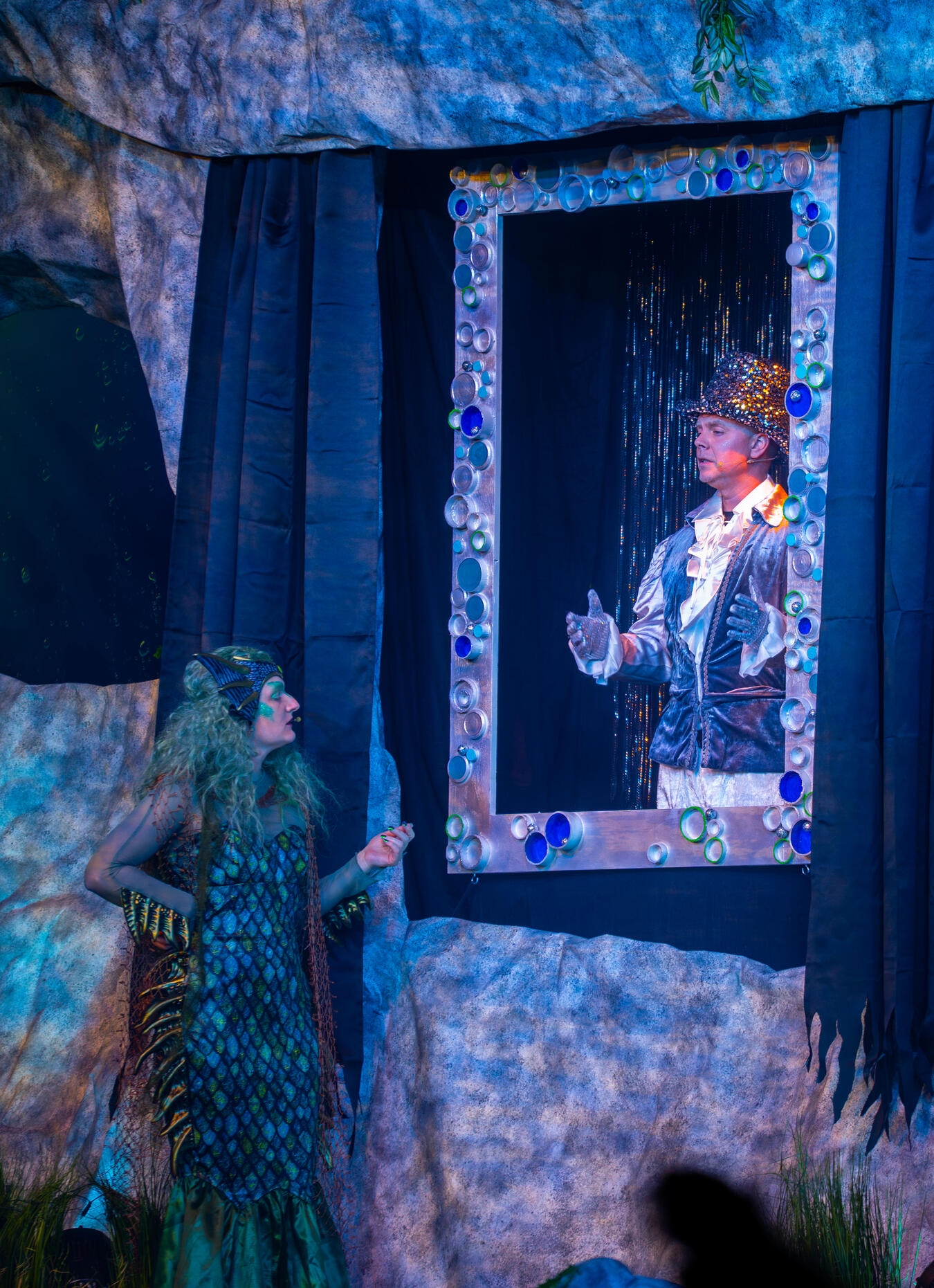 Visuell überzeugte das Straelener Weihnachtsmärchen einmal mehr mit einer liebevoll gestalteten Kulisse: Ein See mit Floß führte zur geheimnisvollen Grotte mit magischem Spiegel und digitalen Unterwasser-Effekten. Hinzu kamen der stimmungsvolle Wald, das Zuhause der Müllers und der alte Baum des Baumgeistes, an dem das Mondkraut wächst und im Mondlicht gepflückt werden kann.