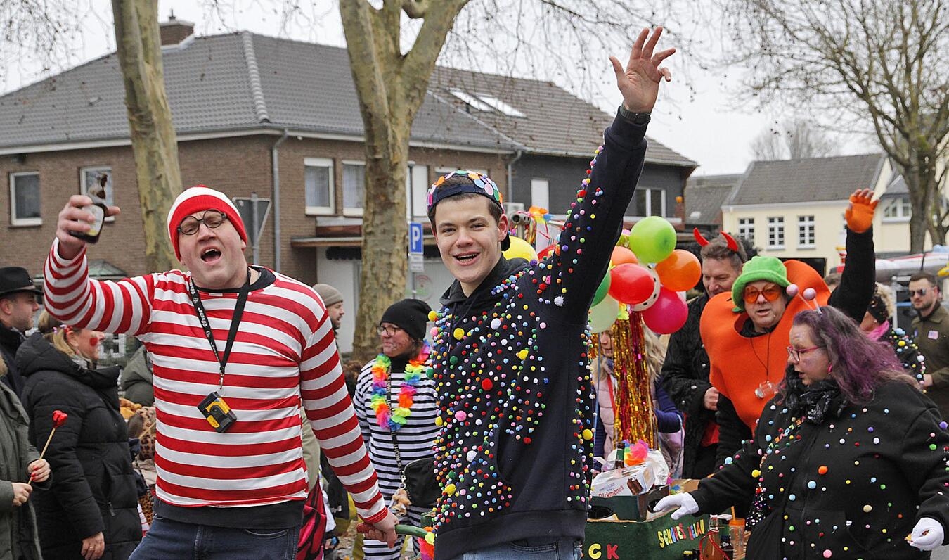 In Rheurdt haben die Jecken das Zepter übernommen. Pünktlich um 11.11 Uhr setzte sich der bunte Karnevalszug am Nelkensamstag in Bewegung. Bei bester Laune, lautem Helau und mit vielen fröhlichen Jecken feierten Jung und Alt den Höhepunkt der Karnevalssession.