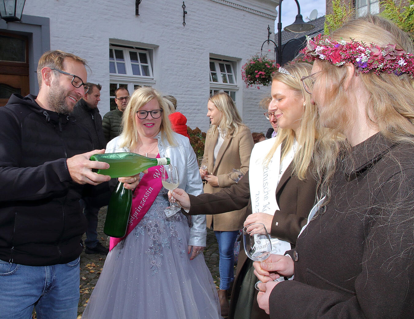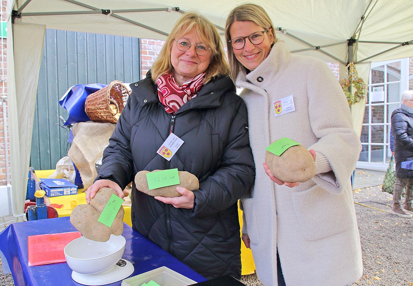 PONT. Der Herbst- und Kartoffelmarkt lockte im Ponter Dorfzentrum einmal mehr zahlreiche Besucher an. Vereine und regionale Händler boten bei schönstem Herbstwetter ein breites Spektrum an saisonalen Produkten, Kunsthandwerk, Floristik und vielem mehr. Nicht fehlen durften unter anderem die Küchenmesser am Stand des Kirchenchors St. Antonius. Für Kinder gab es einen eigenen Trödelmarkt und für das leibliche Wohl war mit herbstlichen Speisen bestens gesorgt. Der Heimat- und Förderverein Pont als Veranstalter des Herbst- und Kartoffelmarktes freute sich sehr, die Rheinische Kartoffelkönigin Nina Naebers, die Walbecker Spargelprinzessin Monika van Bonn und die Lüllinger Heideprinzessin Vanessa Westerhof begrüßen zu dürfen. Conny Mutz, Markus Hacks und Peter Aßmann vom Heimat- und Förderverein führten die Majestätinnen durch das Dorf. Gesucht wurde auch wieder der Kartoffelkönig 2025, der die schwerste Kartoffel mit nach Pont brachte. Kirsten Aßmann und Simone Korbmacher präsentierten einige der aussichtsreiche „Kandidaten“ mit einem Gewicht bis zu 1435 Gramm.