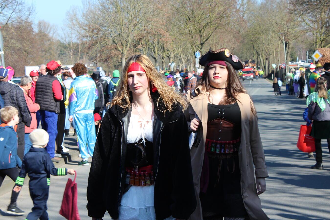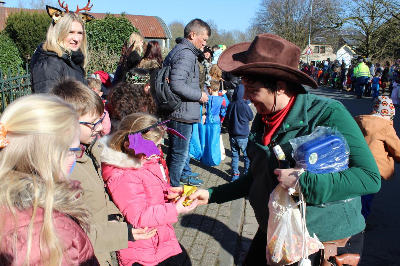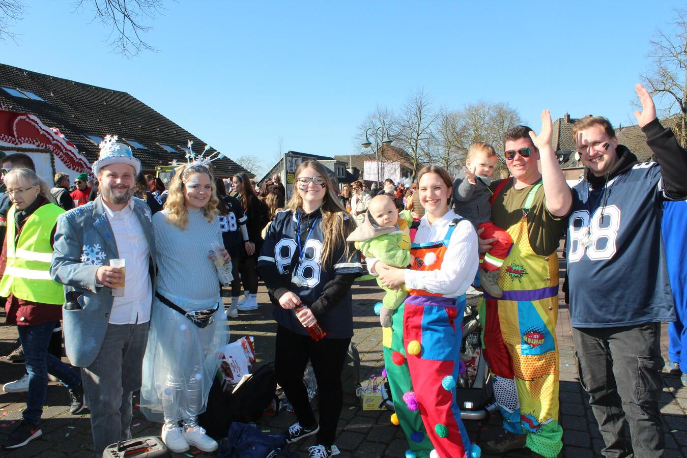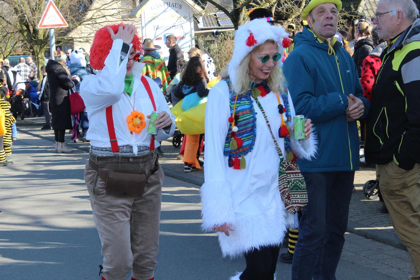 Beim Rosenmontagszug in Haffen-Mehr ging es heute jeck zu. Im Schatten der ausgeklügelten Karnevalswagen und des Kamelle-Regens feierten Jung und Alt in fantasievollen Kostümen ausgelassen miteinander.