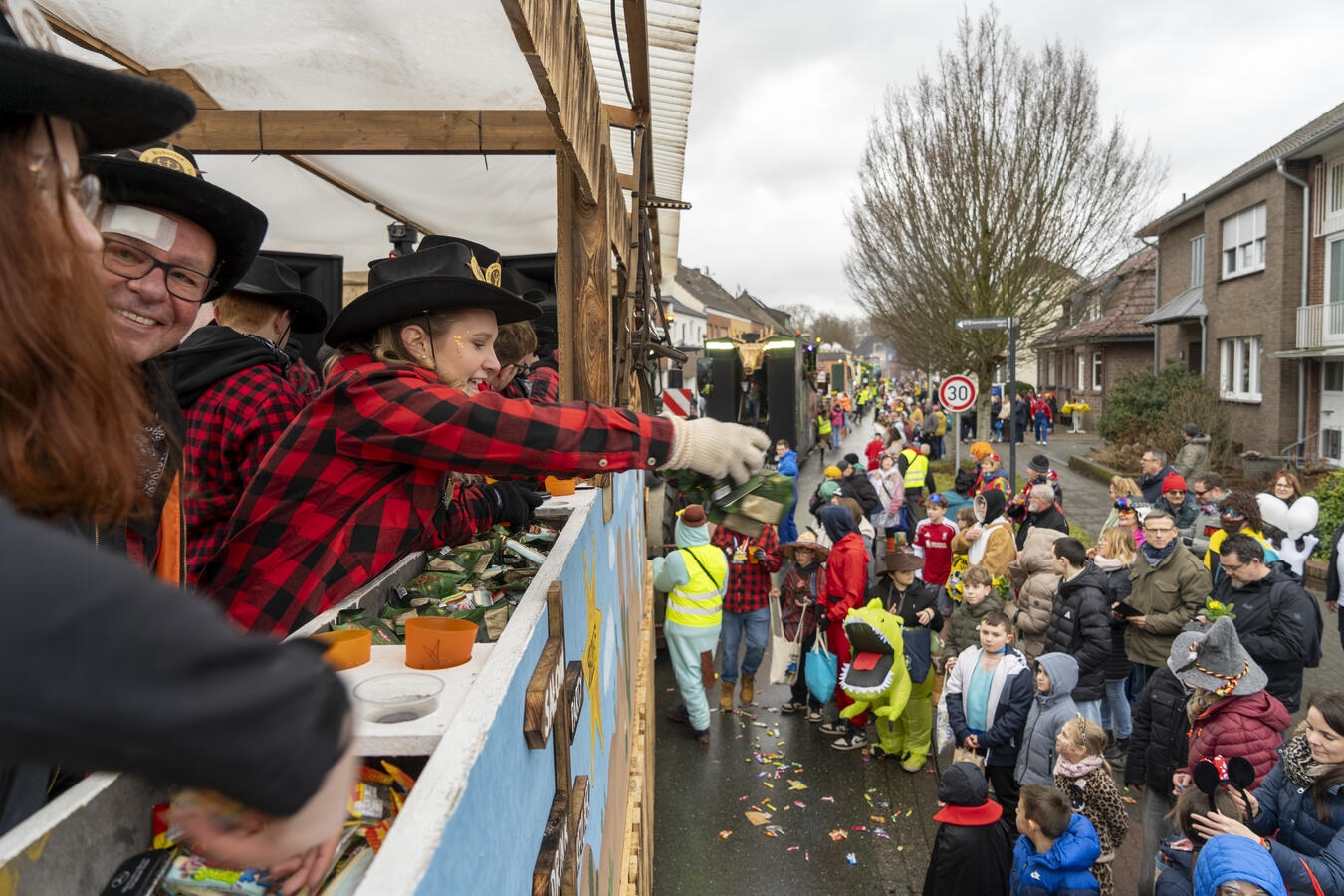 An Rosenmontag hat nicht gerade das beste Wetter geherrscht, aber davon hat man sich in Kevelaer nicht abschrecken lassen. Stattdessen haben die Narren Wagenladungen voller Spaß in Gestalt von viel Musik, tollen Kostümierungen und Kamelle bis zum Gehtnichtmehr in die Straßen der Wallfahrtstadt gebracht. Zudem sorgte der VFR in diesem Jahr für eine Neuerung: Die Friedenstraße wurde in eine Ruhezone mit gedrosselter Musiklautstärke verwandelt – ein Ansatz, der sich vor allem an Eltern mit kleinen Kindern richtete.