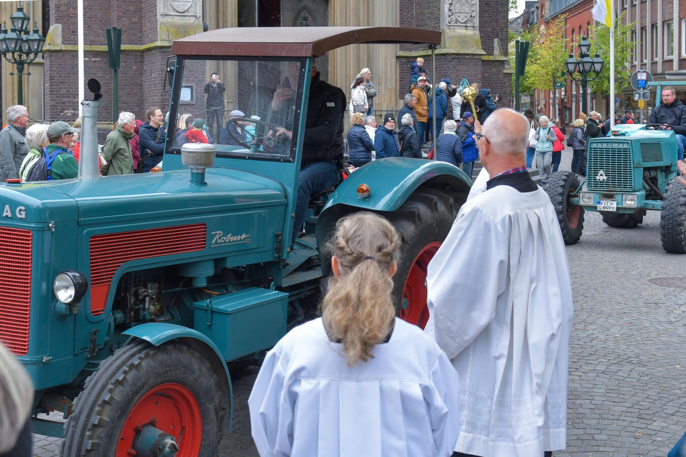 Aus den verschiedensten Ecken des Landes machten sich zum Erntedankfest am 3. Oktober wieder zahlreiche Pilgerfreunde mit ihren historischen Landmaschinen auf den Weg in die Marienstadt Kevelaer – zum fünften Mal und mit mittlerweile rund 130 ansehnlich herausgeputzten Traktoren und Co.