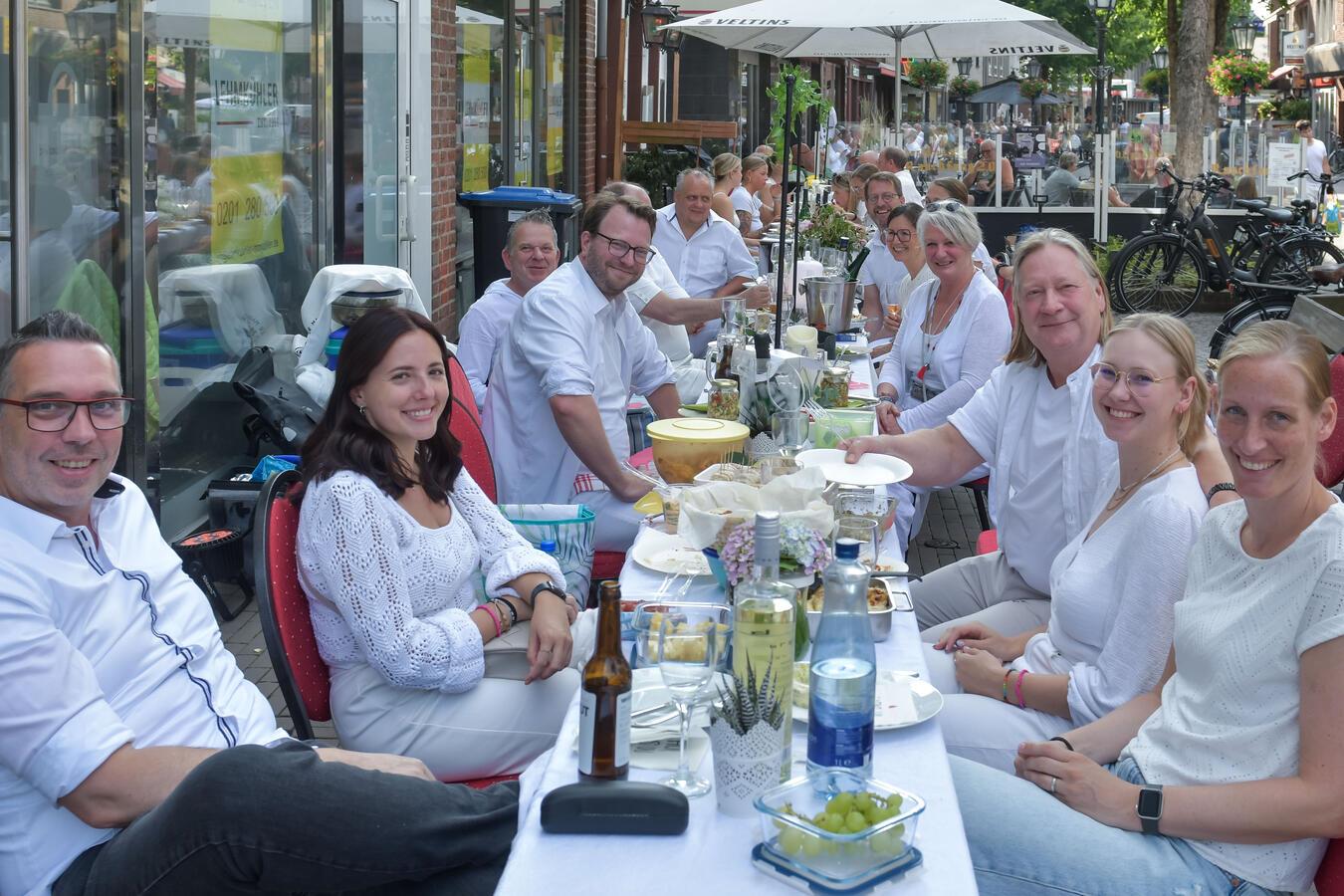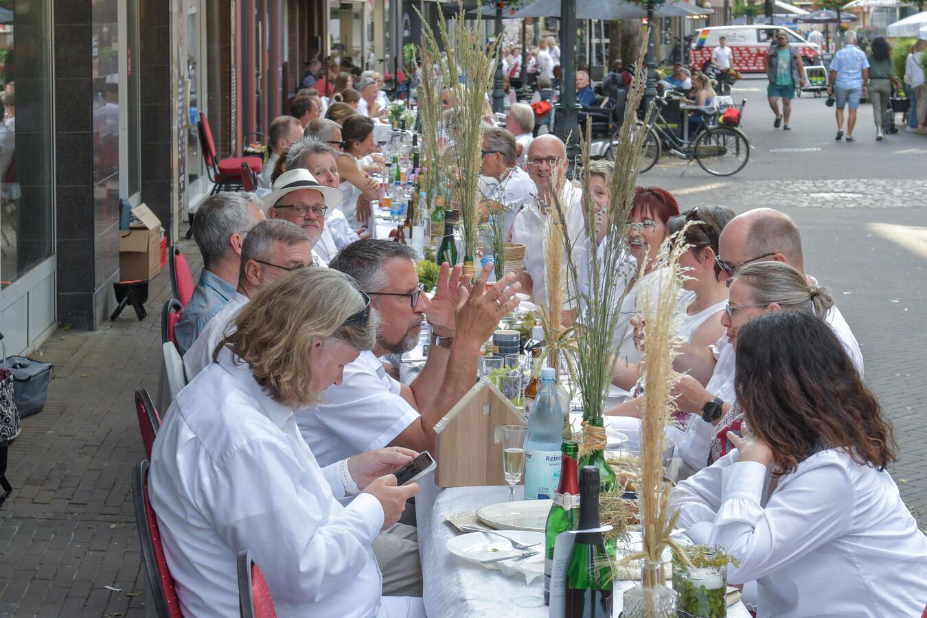 In der Gocher Innenstadt erstrahlte kürzlich alles in Weiß: Der Werbering Goch hatte aus Anlass seines 50. Geburtstages zum ersten "White Table Dinner" in der Weberstadt eingeladen. Alle 300 Plätze waren ausgebucht und die Menschen genossen die besondere Atmosphäre.