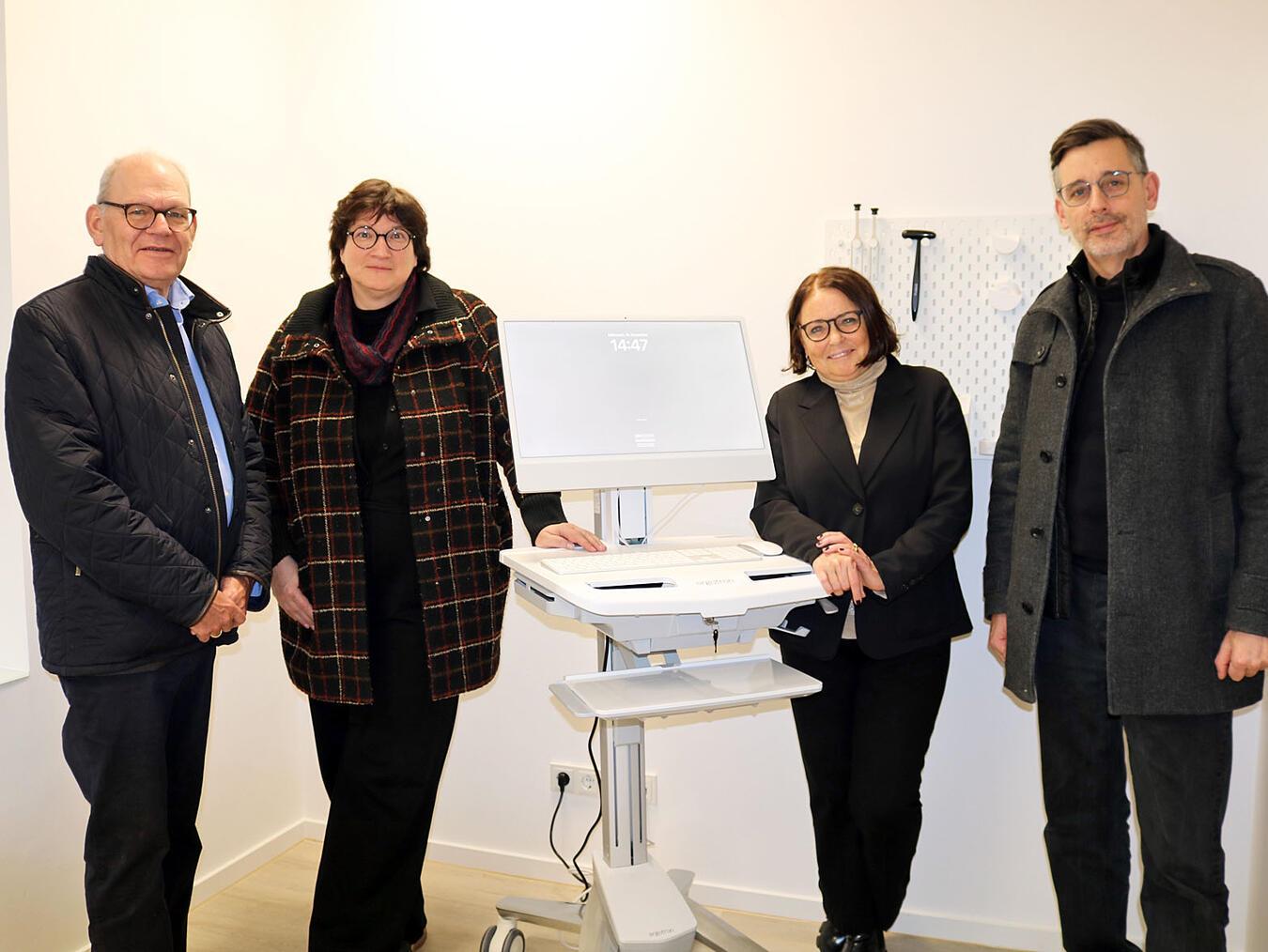 Bürgermeister Ulrich Knickrehm, Innenarchitektin Heide-Ute Maas, Gesundheitsbeauftragte Gabi Theissen und Gero Guntlisbergen (Vermögensbetrieb Stadt Goch, v.l.) freuen sich auf den planmäßigen Start des kommunalen MVZ im Januar. NN-Fotos: CDS
